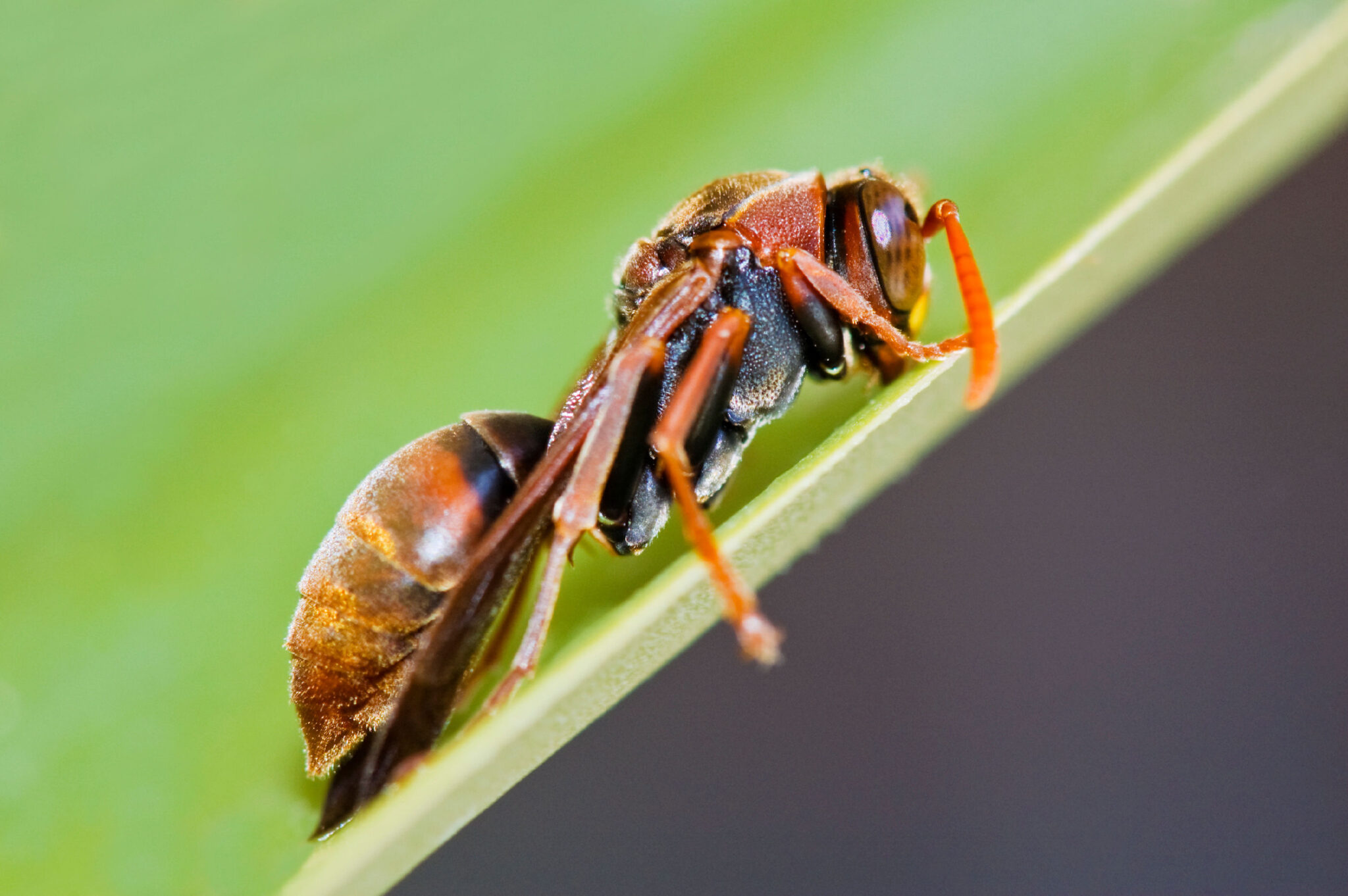 Wasps are typically characterised by their slender bodies, smooth exoskeleton, and narrow waist. They are usually black or brown, although some species may have yellow markings on their bodies. One key feature to look for is the black stripes or dots on their abdomen. This marking is a notable distinction of many wasp species. Additionally, wasps have two pairs of wings and long antennae on their heads.
